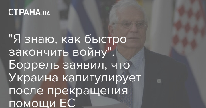 "Я знаю, как быстро закончить войну". Боррель заявил, что Украина капитулирует после прекращения помощи ЕС