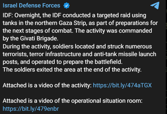Израильская армия показала кадры танкового рейда на территорию сектора Газа. По данным ЦАХАЛ, танки вошли на север палестинского анклава, нанесли ряд ударов и вернулись на территорию Израиля.