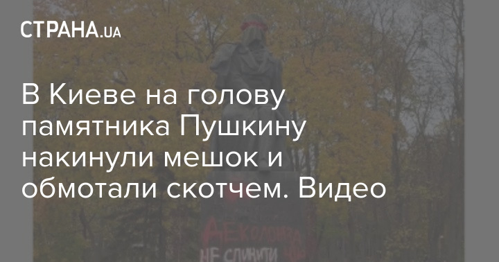 В Киеве на голову памятника Пушкину накинули мешок и обмотали скотчем. Видео