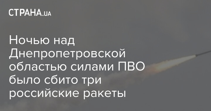 Сегодня ночью силами ПВО было уничтожено три российские ракеты над Днепропетровской областью.