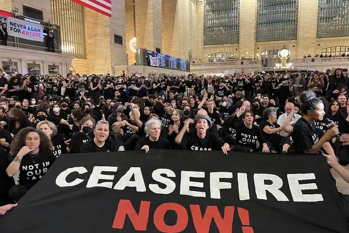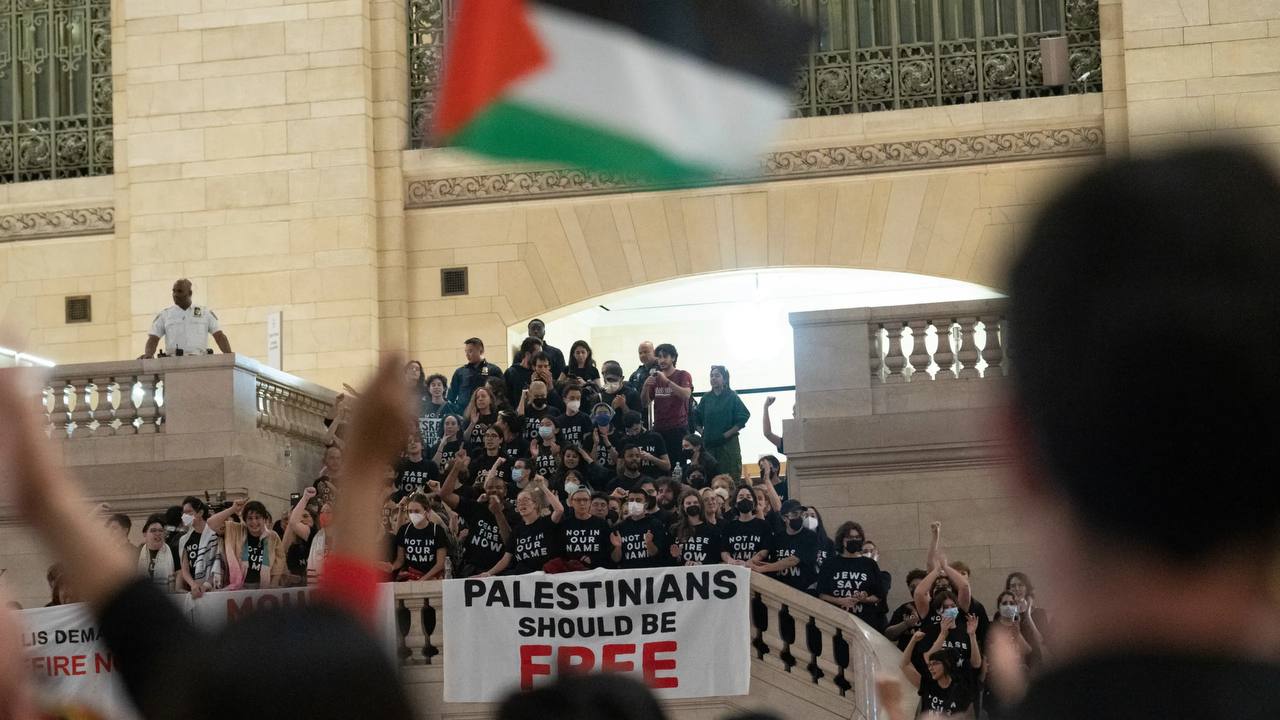 Сотни протестующих заблокировали Центральный вокзал Нью-Йорка, требуя прекращения огня в секторе Газа. Об этом сообщает CBS News.