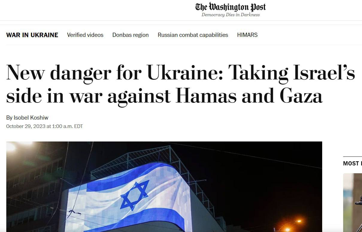 Война в секторе Газа представляет собой одно из самых сложных дипломатических испытаний для Украины с февраля 2022 года, считает издание. Такие страны, как Турция, Саудовская Аравия и Катар, которые порой оказывали большую поддержку Украине, обвинили Запад в двойных стандартах в Газе, указывая на широкое осуждение гибели мирных жителей в Украине по сравнению с приглушенной критикой Израиля за бомбардировки Газы.