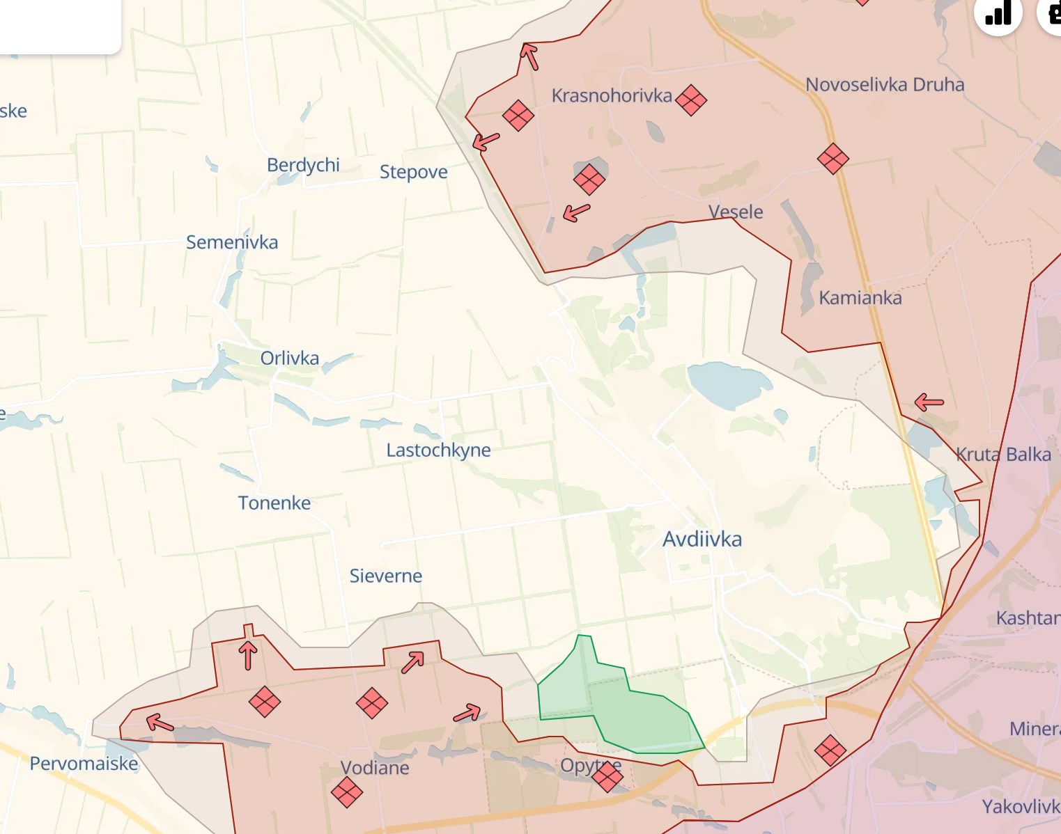 К юго-западу от Авдеевки россиянам удалось выдавить ВСУ из карьера возле Водяного, сообщает телеграм-канал Deep State. С той же стороны РФ продолжает давление в сторону Северного и Тоненького, но там атаки отражаются.