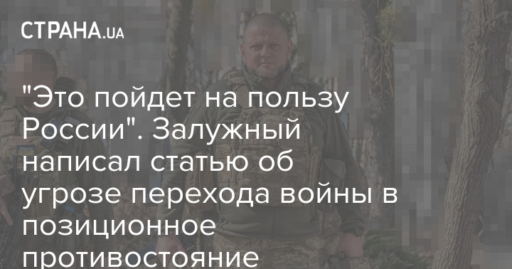 Главком ВСУ Валерий Залужный написал статью об угрозе перехода войны в позиционную, что, по его мнению, "пойдет на пользу России", поскольку она тогда успеет "восстановить свою военную мощь".