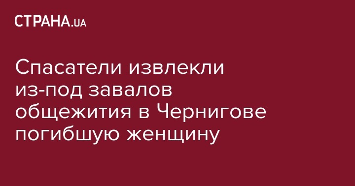 В 22.15 понедельника, 12 декабря спасатели извлекли из-под завалов обрушившегося в Чернигове общежития швейной фабрики тело погибшей женщины. Об этом сообщает пресс-служба Государственной службы по чрезвычайным ситуациям (ГСЧС).
