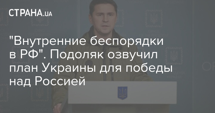 По словам Подоляка, план состоит в нанесении "тактического поражения" России в расчете на последующую внутреннюю дестабилизацию в РФ.