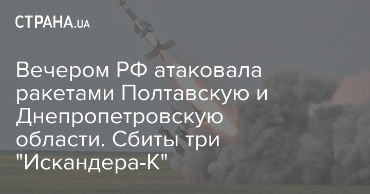 Вечером РФ атаковала Днепропетровскую и Полтавскую области крылатыми и баллистическими ракетами. Сбиты три "Искандера-К".