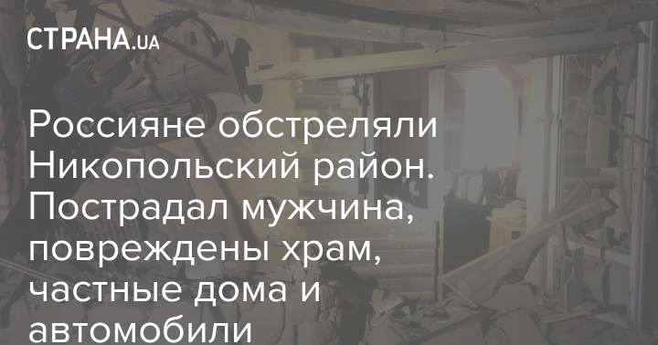 Россияне обстреляли Никопольский район. Пострадал мужчина, повреждены храм, частные дома и автомобили