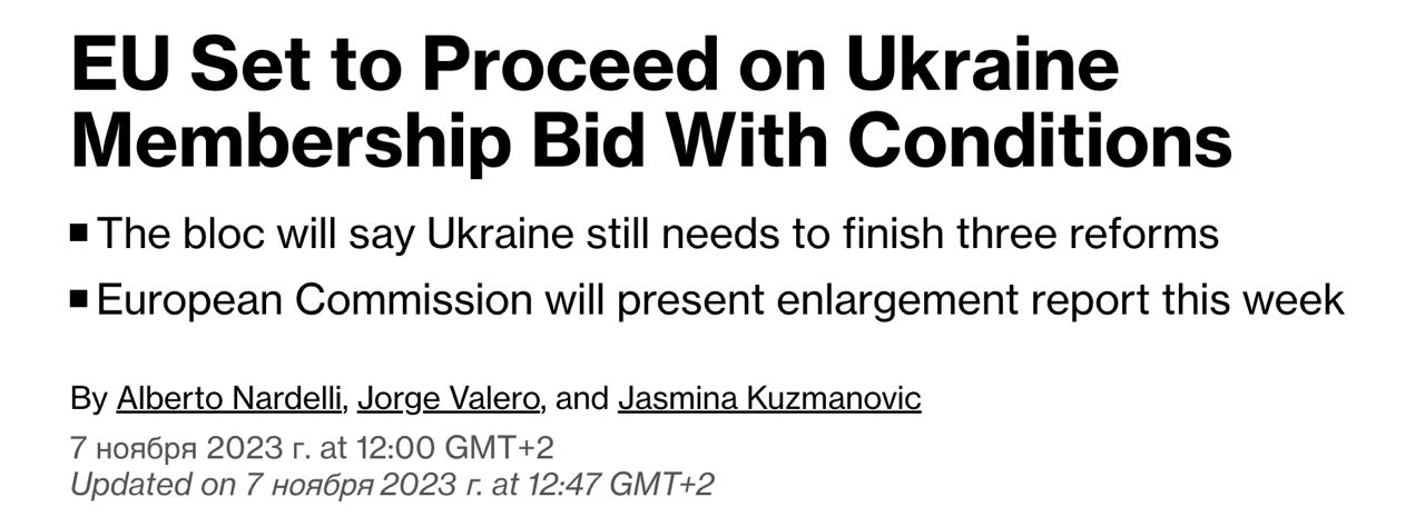Еврокомиссия считает, что Украина выполнила четыре условия из семи для вступления в ЕС - Bloomberg