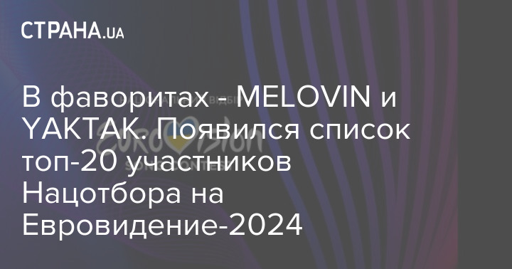 В фаворитах - MELOVIN и YAKTAK. Появился список топ-20 участников Нацотбора на Евровидение-2024