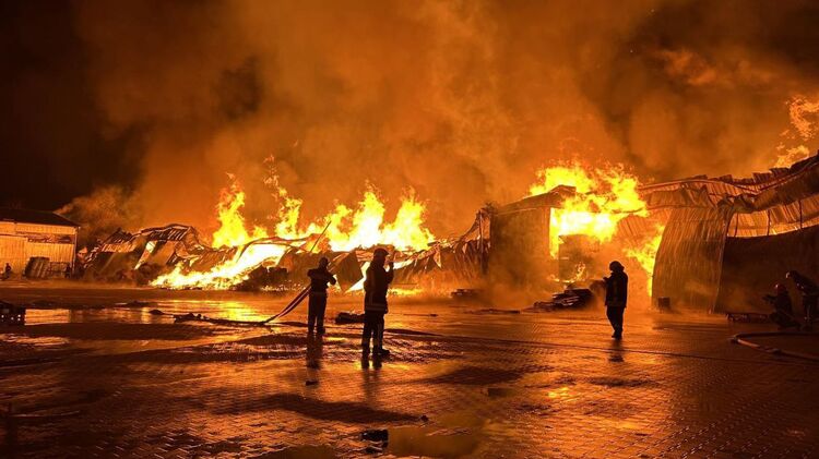 В Виннице спасатели продолжают ликвидировать масштабный пожар на складе стройматериалов. Видео