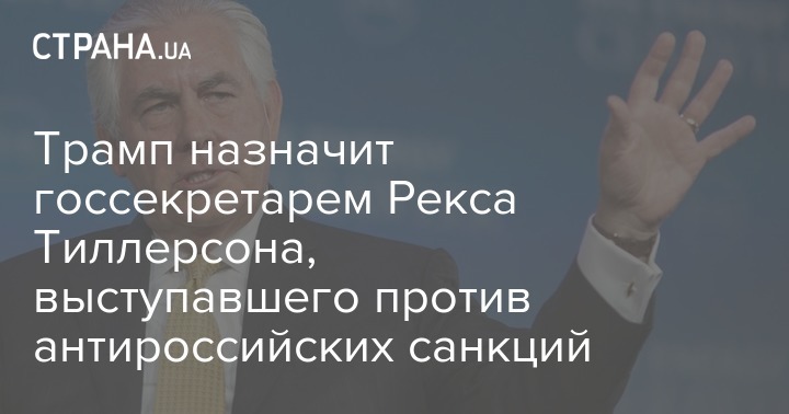 Трамп назначит госсекретарем Рекса Тиллерсона, выступавшего против антироссийских санкций