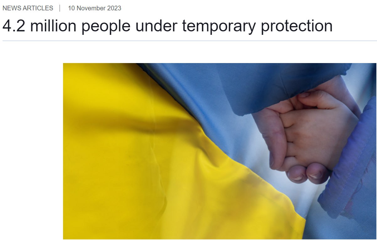 Статус временной защиты в странах ЕС на 30 сентября 2023 года имели 4 млн 186,17 тысяч человек, покинувших Украину с начала войны.