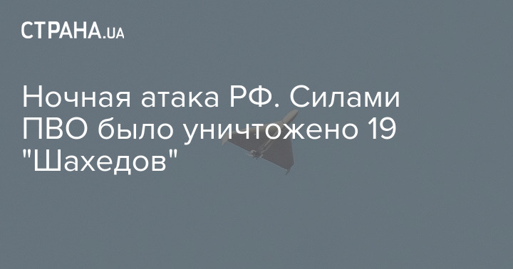 Сегодня ночью россияне атаковали Украину ударными БПЛА и несколькими ракетами разных типов. В результате противовоздушного боя уничтожены 19 вражеских ударных БпЛА "Shahed-136/131".