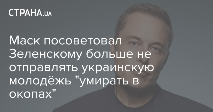"Да. Я ему советую не отправлять цвет украинской молодежи умирать в окопах. Не нужно этого делать, независимо от того, будет ли он вести диалог с Путиным или нет", - сказал Маск.