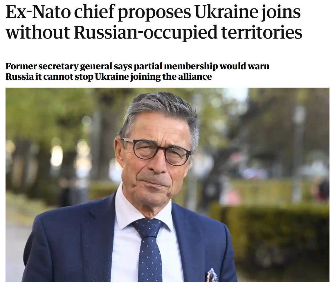 Бывший генсек НАТО Андерс Фог Расмуссен предложил, чтобы Украина присоединилась к Североатлантическому Альянсу без территорий, захваченных Россией.