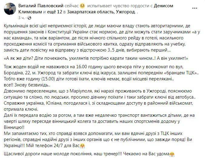 В Ужгороде военкомы ночью насильно увели в ТЦК водителя автобуса, который привез детскую команду из Винницы на спортивные соревнования по тхэквондо.