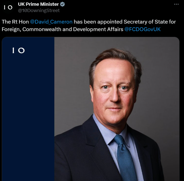Бывший премьер Британии Дэвид Кэмерон назначен новым министром иностранных дел королевства.