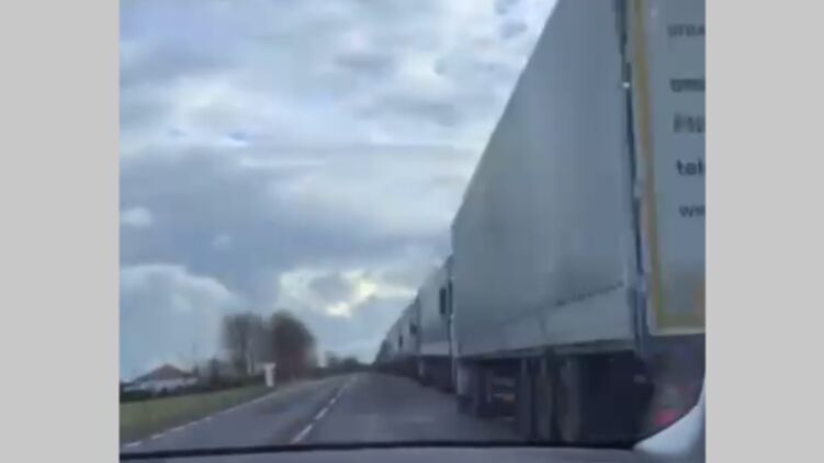 В сети появилось видео гигантской очереди из фур на польско-украинской границе.