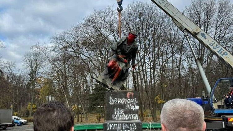 В Киеве сносят памятник Пушкину. Фото: фейсбук