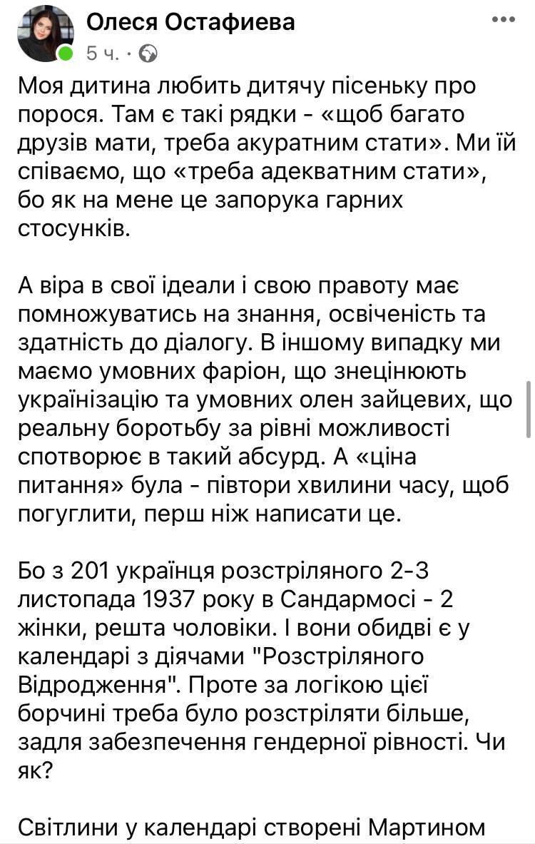 Феминистка возмутилась, что в календаре с расстрелянными представителями украинской культуры всего две женщины