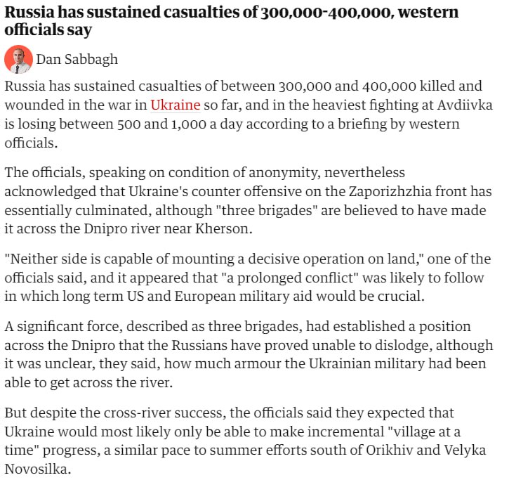 Чиновники, говорившие на условиях анонимности, заявили, что контрнаступление Украины на Запорожском фронте, по сути, завершилось, "хотя, как полагают, три бригады переправились через Днепр под Херсоном".