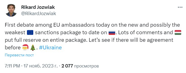 Также он уточнил, что Венгрия полностью заблокировала обсуждение всего пакета санкций.