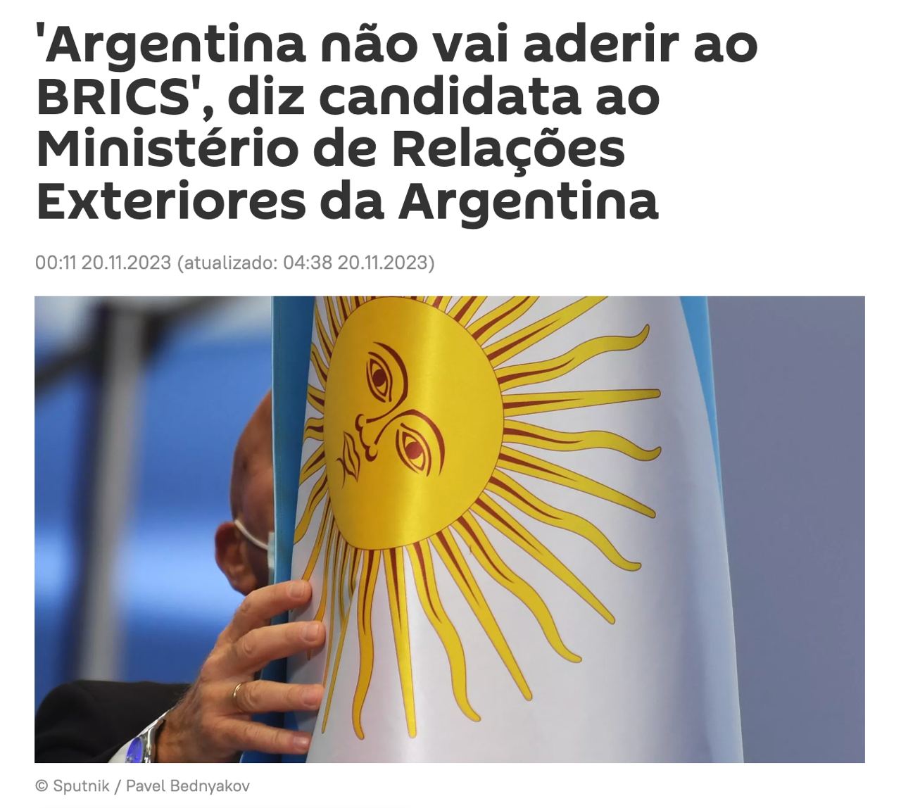 Старший экономический советник нового президента Хавьера Милея заявил, что Аргентина не присоединится к БРИКС с 1 января 2024 года.