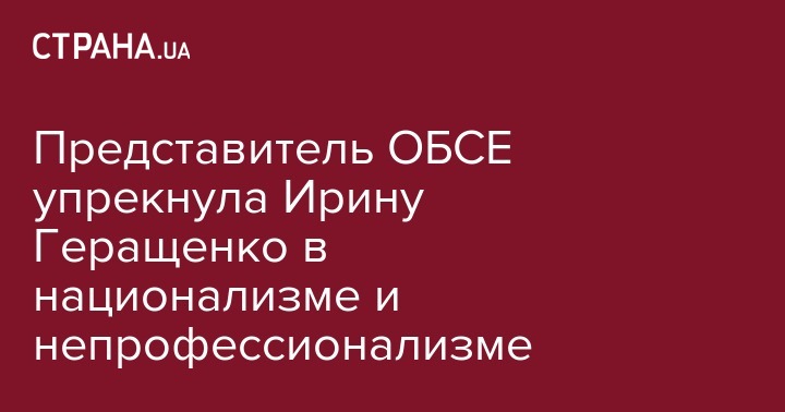 Напомним, вице-спикер украинского парламента Ирина Геращенко опубликовала на своей странице в Facebook критический пост по отношению к представителю ОБСЕ по вопросам свободы СМИ Дуне Миятович. Поводом для него стала книга Миятович "Две страны - одна профессия".
