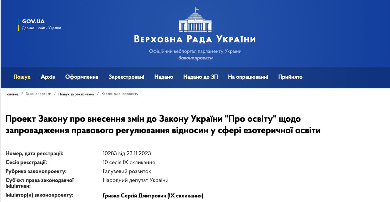 "В настоящее время в обществе сформировалась необходимость признания эзотерических услуг и эзотерического образования неотъемлемой частью современной жизни. Учитывая активное распространение среди населения эзотерических знаний и мыслей, рост популярности пользования эзотерическими услугами, а также наличие в научных кругах прямых дискуссий и обоснований относительно целесообразности применения эзотерических учений в жизнедеятельности человека, эзотерика фактически стала отдельной сферой занятости в обществе", - написал Гривко в пояснительной записке.
