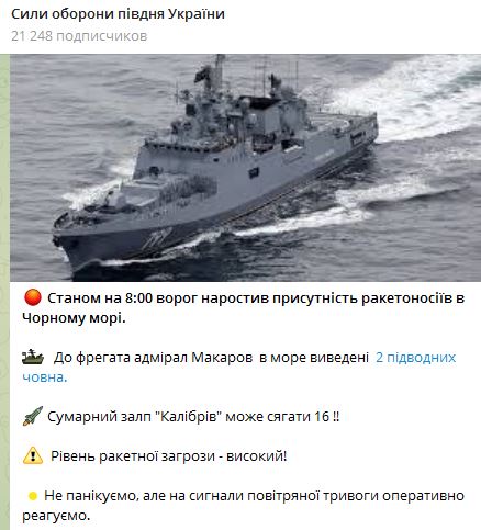Носитель "Калибра". Фото Силы обороны юга Украины