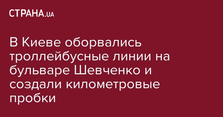 Сегодня, 14 декабря, около 8 часов утра в центре Киева на бульваре Тараса Шевченко в направлении Бессарабской площади образовалась внушительных размеров автомобильная пробка. Как стало известно, здесьоборвались контактные троллейбусные линии, которые и стали причиной дорожного коллапса. Об этом сообщает "Главком"