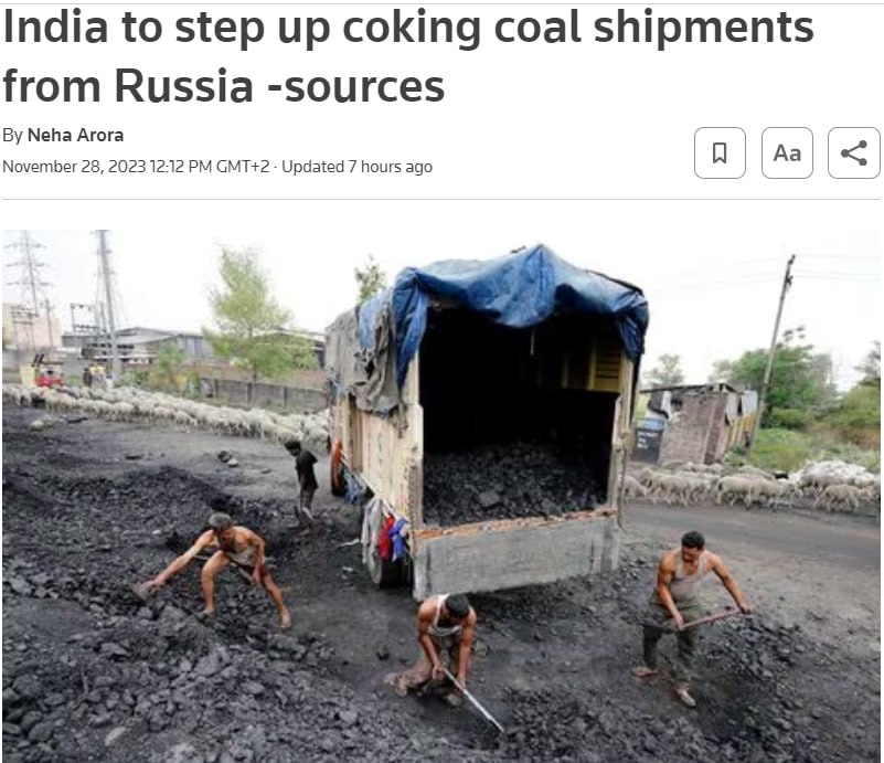 Агентство пишет, что цены на австралийский уголь резко выросли, что побудило Индию диверсифицировать источники поставок. Санкции против России первоначально препятствовали этому, но улучшение платежных механизмов, включая переход на расчеты в рупиях, способствуют увеличению российского импорта.