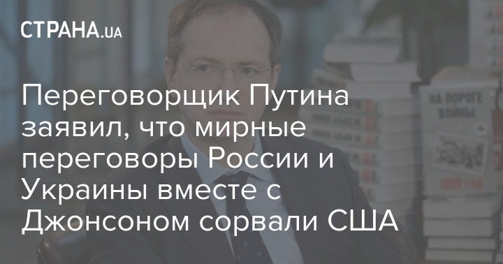 Помощник президента РФ Владимир Мединский, участвовавший в стамбульских переговорах 30 марта 2022 года, утверждает, что заключение мирного договора между РФ и Украиной весной прошлого года было сорвано после визита в Киев не только Бориса Джонсона, но и представителей американских Госдепа и Пентагона.