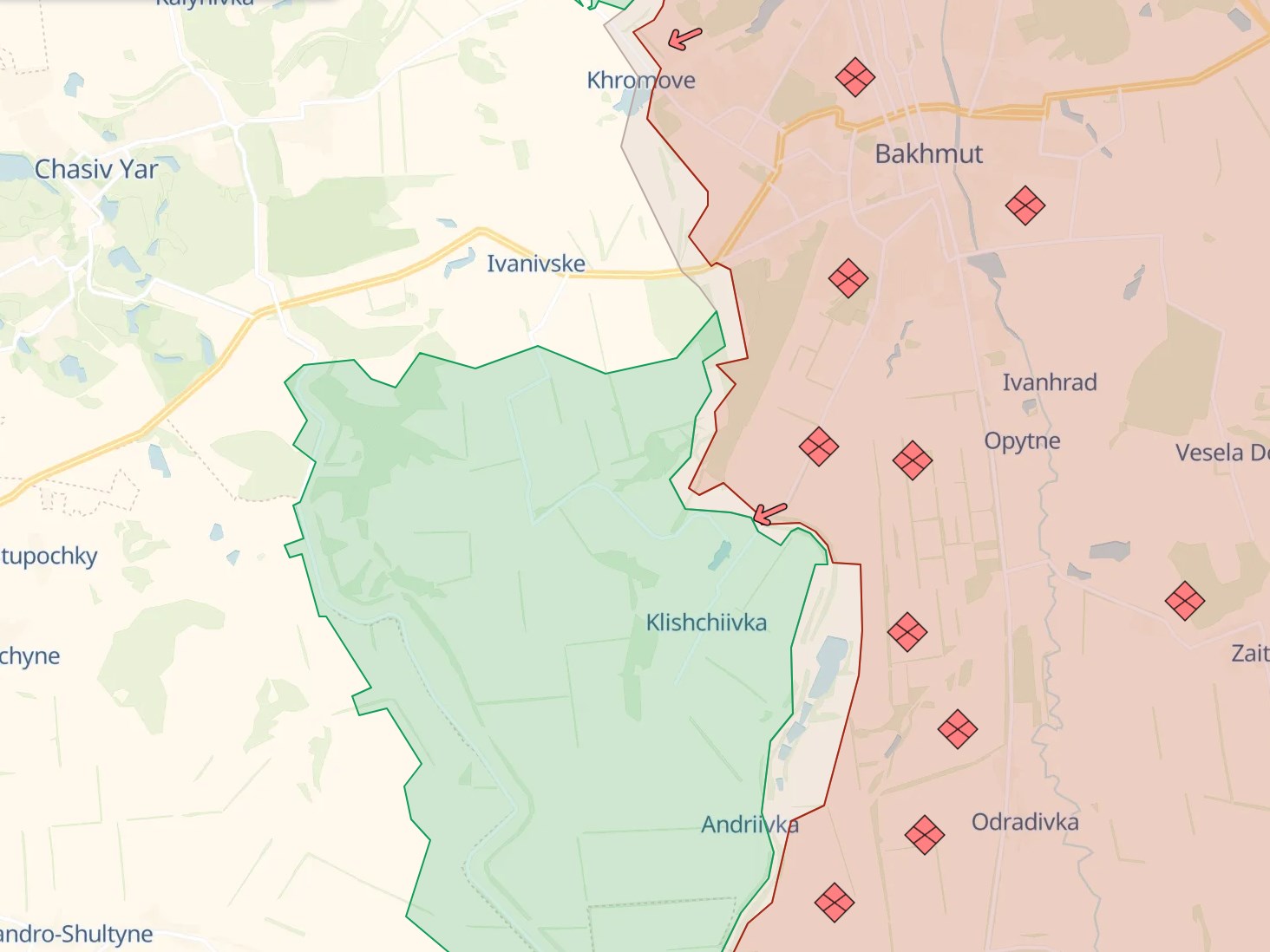 Но для этого им нужно для начала выбить украинские войска с высот под Клещевкой (которые на данный момент остаются за ВСУ), а также взять Ивановское - село около юго-западной окраины Бахмута.