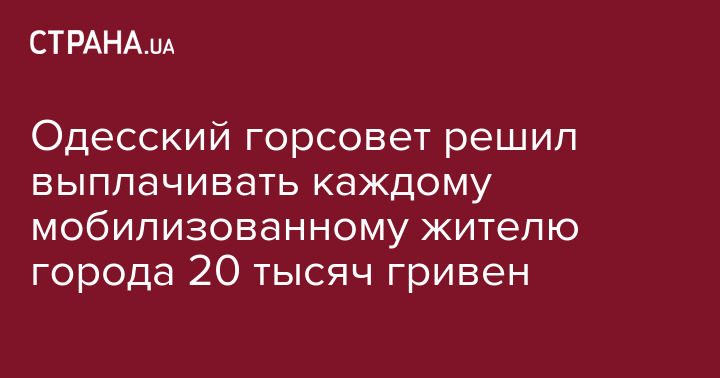 В Одессе каждому мобилизованному жителю города выплатят 20 тысяч гривен.