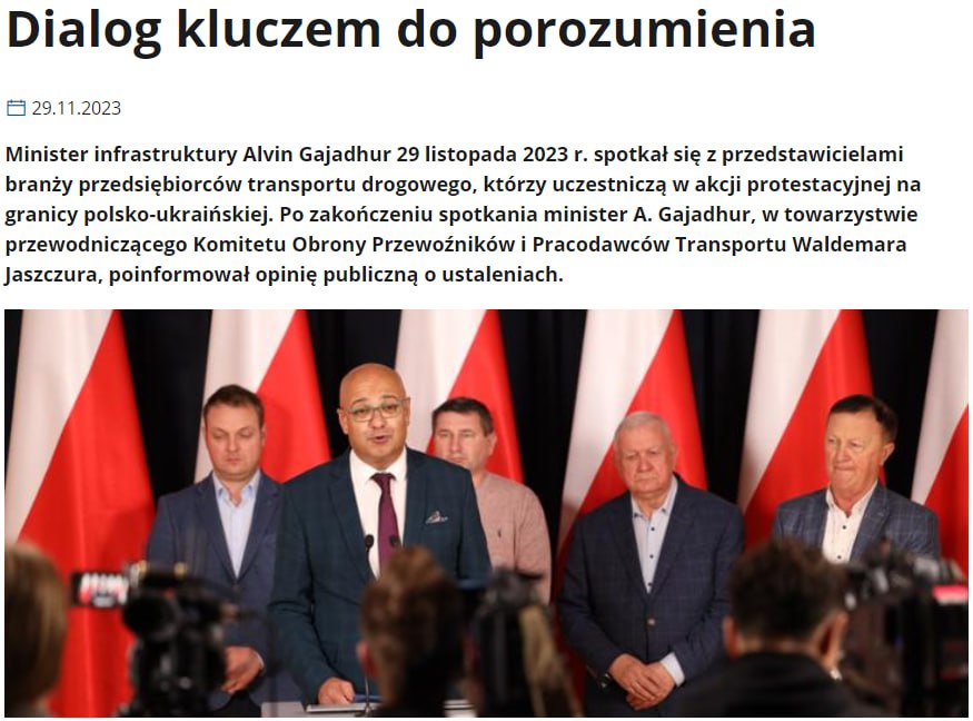 "На сегодняшней встрече мы сказали министру, что не намерены прекращать наш протест. Однако мы отказались от его распространения на последующие пункты пересечения границы, хотя он уже готовился. Мы также готовы рассмотреть возможность смягчения формы нашего протеста, если польское государство усилит эффективный контроль над грузовиками, въезжающими в Польшу", – заявил Ящур.
