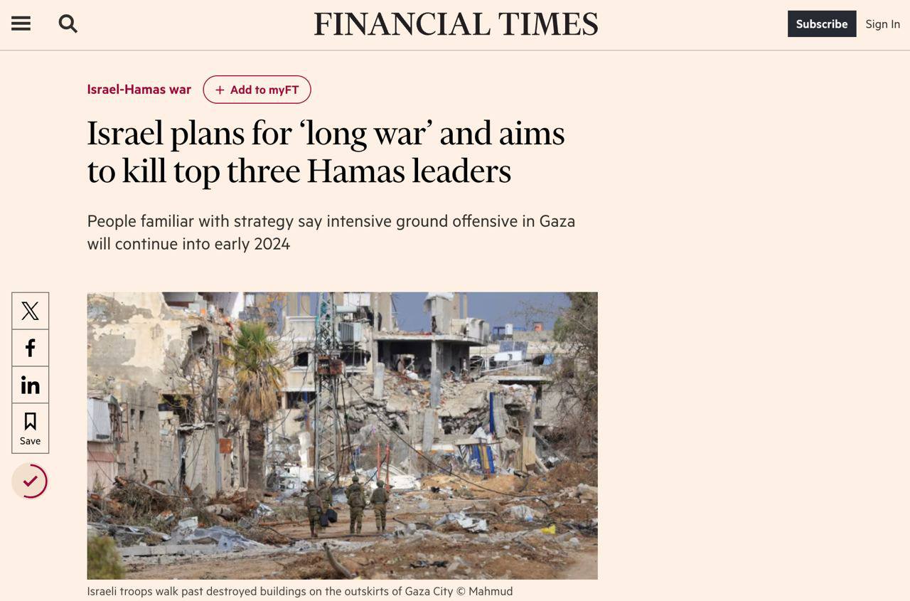 Операция Израиля может продлиться год или больше, цель — убить всех руководителей ХАМАС — FT