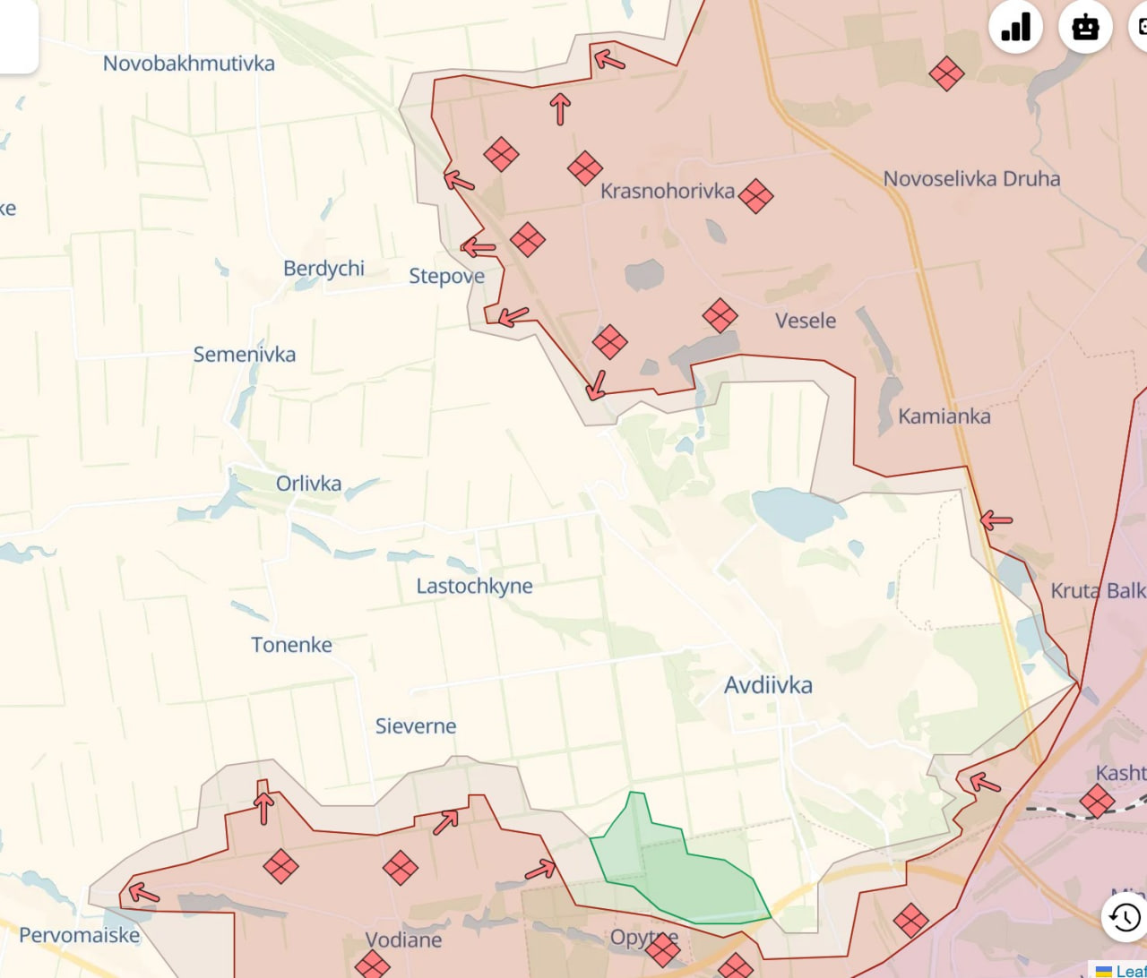 Американский Институт изучения войны, изучив кадры в соцсетях, утверждает, что российские войска продвинулись к западу от железной дороги севернее села Степное (северный фланг).