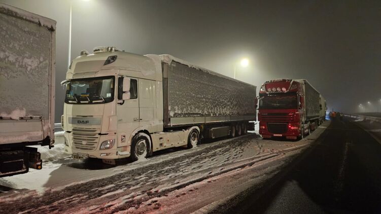 Поскольку на границе с Польшей блокада продолжается, многие водители поехали в Словакию и там образовались пробки. С утра там в очереди стоит 625 грузовых транспортных средств.