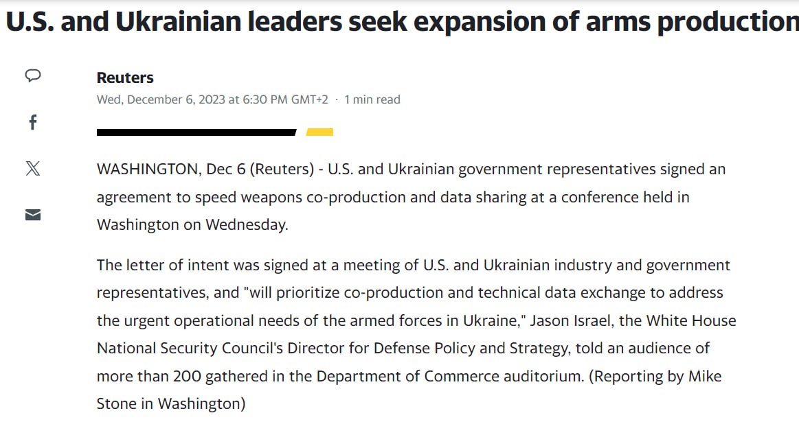 Представители правительств и промышленности США и Украины подписали соглашение о намерениях ускорить совместное производство оружия и обмен данными. Это произошло на конференции, состоявшейся в Вашингтоне в среду.