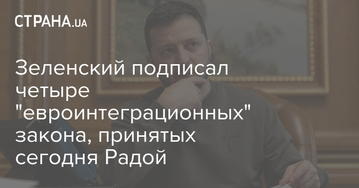 Зеленский подписал четыре "евроинтеграционных" закона, принятых сегодня Радой