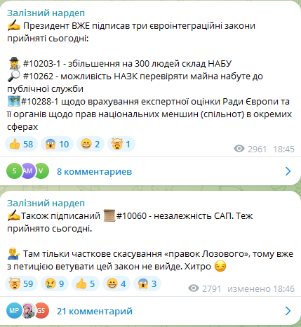 Об этом сообщил в своем телеграм-канале народный депутат Ярослав Железняк.