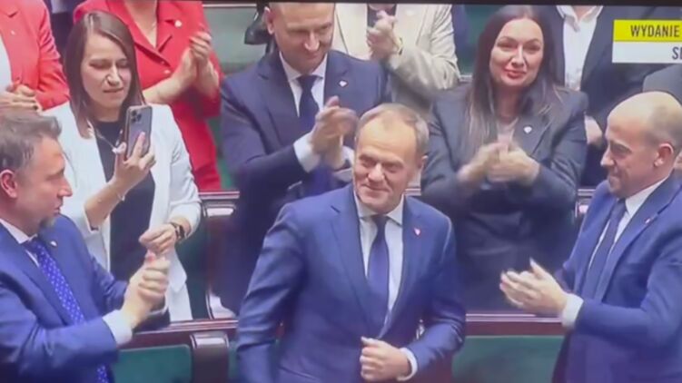 Избрание Дональда Туска премьером Польши в Сейме встретили овациями. Скриншот видео