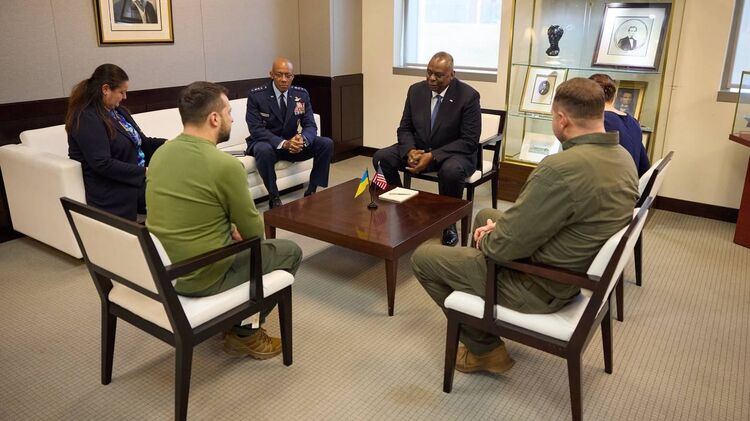Президент Украины Владимир Зеленский в Соединенных Штатах встретился с главой Пентагона Ллойдом Остином и главой Объединённого комитета начальников штабов генералом Чарльзом Брауном.