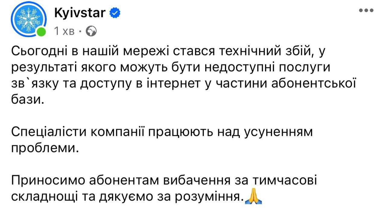 Позже появился официальный комментарий Киевстара по поводу проблем со связью. Говорят, что произошел технический сбой. Компания работает над его устранением.