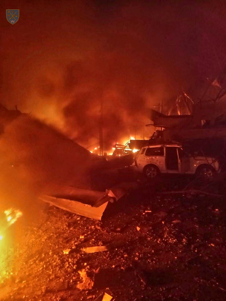 Один из сбитых дронов упал на территорию коммунального авторемонтного предприятия в Одессе, вспыхнул пожар.