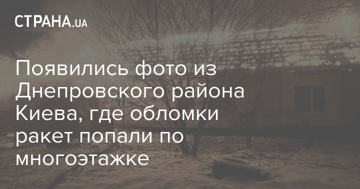 Появились фото из Днепровского района Киева, где обломки ракет попали по многоэтажке.