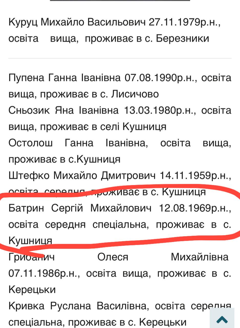 О нем сообщается на сайте Керецковской общины Закарпатской области. Батрин значится там членом комиссии по законности и правопорядку.