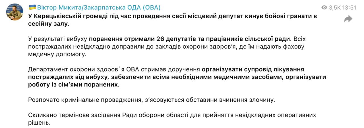 Напомним, сегодня около полудня стало известно, что на Закарпатье депутат взорвал гранаты во время сессии.